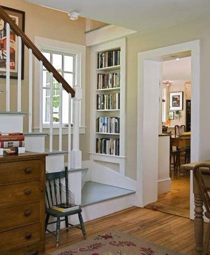 書柜在人們的生活中較為常見,但是你見過以上這種拐角書柜么?在進行了一天繁忙工作之后,隨手抽出一本書,來消磨整個晚上的休閑時光,不必專門尋去書房,隨時隨地的實現閱讀,如此將強調生活功能性的別樣設計,滿足了人們日常生活。