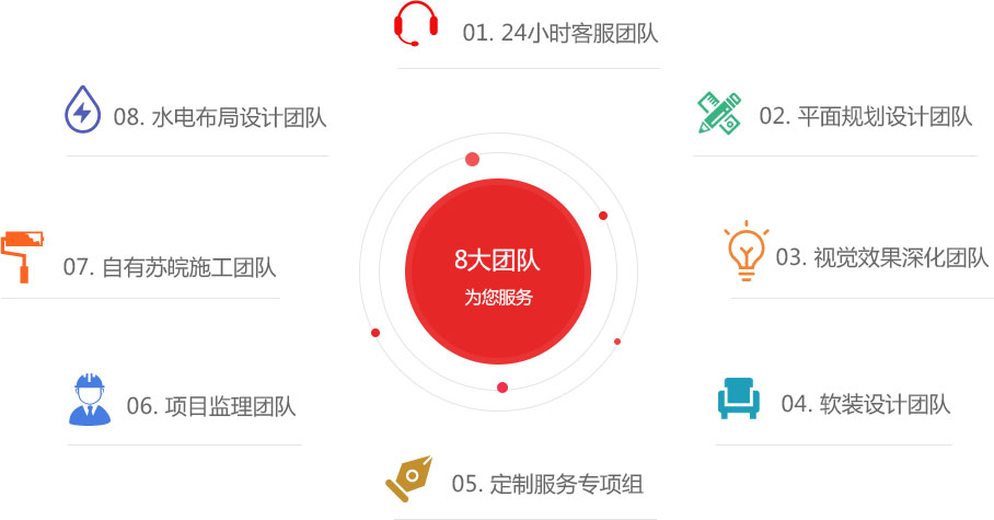 施工過程統一安排,銜接緊密,從毛坯到入住只需15天標準工期。