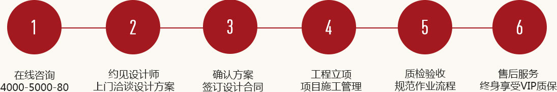 經過年的沉淀,我們將繁雜的裝修流程系統優化精簡至6大步驟,緊密貼合您的需求,為您提供舒適的裝修體驗