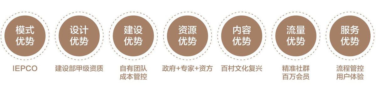 隨著鄉村文旅在國內的興起,弘善小鎮結合自身優勢,研發出一套IEPCO新模式,集IP、設計、采購、施工、運營全過程一體化閉環服務模式,從流量、設計源頭及最終運營抓起,使整個行業一體化、規范化、集約化、可持續復制化, 可最大程度解決目前鄉村振興的痛點,為行業首創的一站式解決方案。